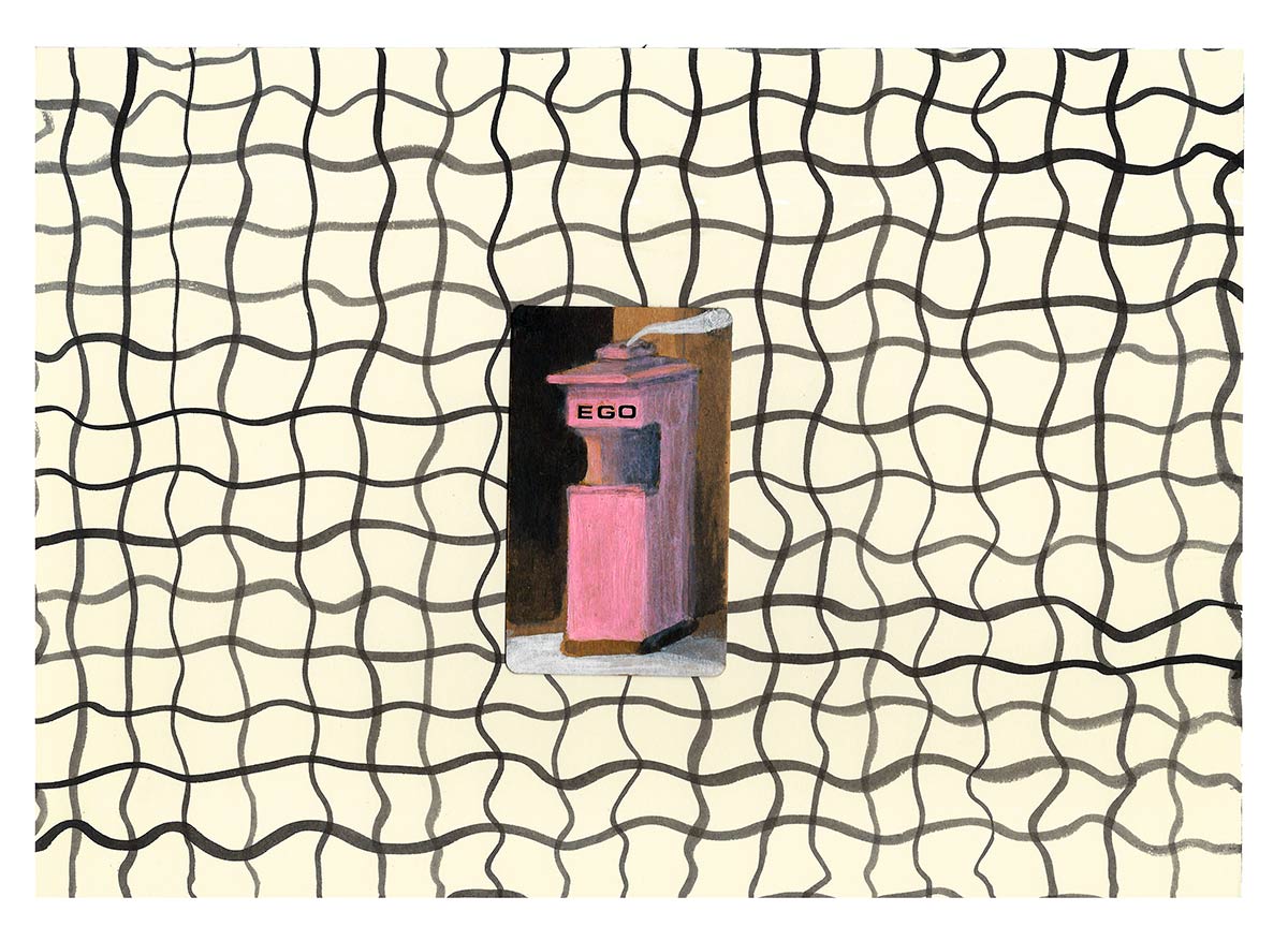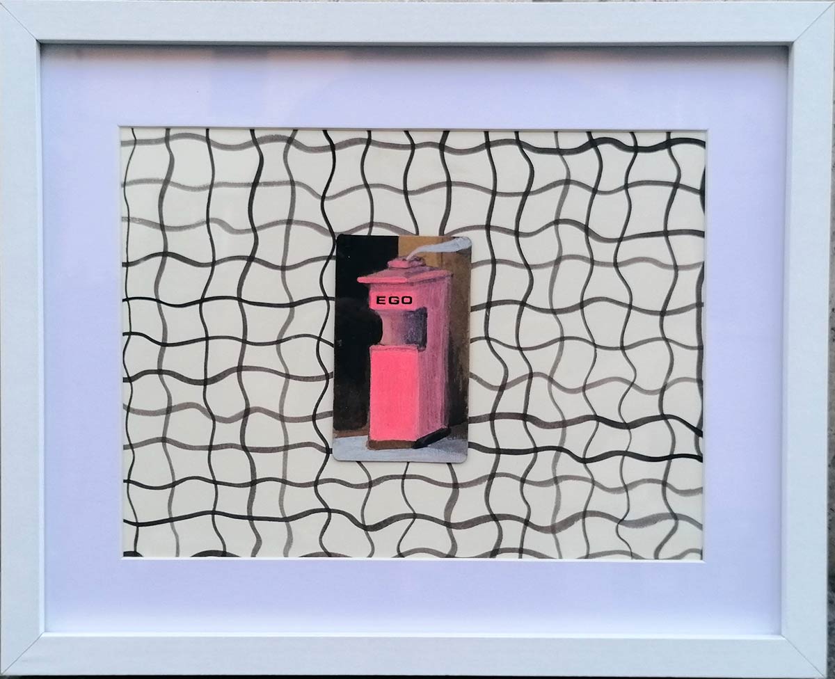 Inchiostro e acrilico su carta applicato su pattern a inchiostro su carta, 9 x 5,5 cm + 21 x 29,7 cm