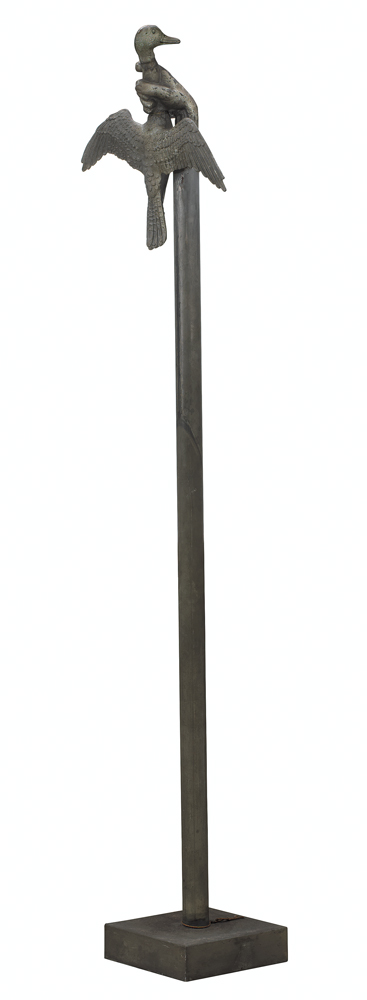 VALERIANO TRUBBIANI Macerata 02/12/1937 Stato d'assedio, 1971/72 scultura in ferro zincato e alluminio cm. 210x51x30, opera non firmata, esemplare unico, pubblicata sul catalogo della mostra "Valeriano Trubbiani", tenutasi dal 16 febbraio al 5 marzo 1974 presso la Galleria Bambaia (Busto Arsizio) nella foto ritraente la sala di Valeriano Trubbiani alla XXXVI Biennale di Venezia del 1972. Esposizioni: Venezia, XXXVI Biennale Internazionale d'Arte, sala personale, 1972.