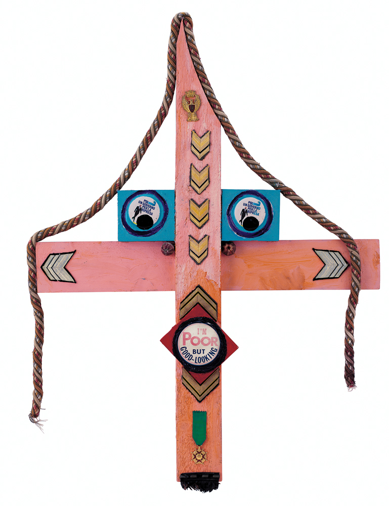 ENRICO BAJ Milano 31/10/1924 - Varese 15/06/2003 Maschera a croce per penitenze, 1993 legni, acrilici e collage cm. 99x77, opera non firmata, pubblicato su "Enrico Baj, Catalogo generale delle opere dal 1972 al 1996", Edizioni Marconi-Menhir, pagina 386 al numero 2528, opera priva di cornice.