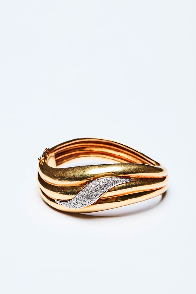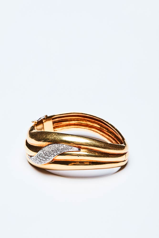 Bracciale artigianale realizzato in Italia negli anni '40 in oro giallo K 18 e brillanti di 1,0 ct. Misure bracciale: 62,37x64,8 mm; grammi 60,40 .