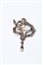 Spilla artigianale realizzata in Italia nei primi anni del '900 in oro bianco K 18 con diamanti taglio TVE di ct.3 e due piccole perle irregolari: la centrale 6 mm, la pendente 5,5 mm. Misure 58,3x37, peso 16,40 gr.
