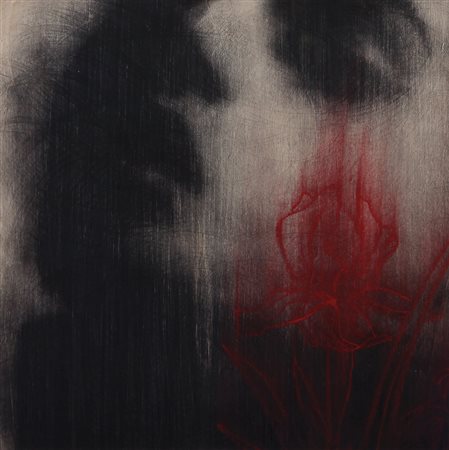 OMAR GALLIANI Montecchio Emilia (Re) 30/10/1954 Ancora fiori del male grafite su tavola cm. 40x40, titolo e firma al retro, dichiarazione d'autenticità dell'artista su foto.