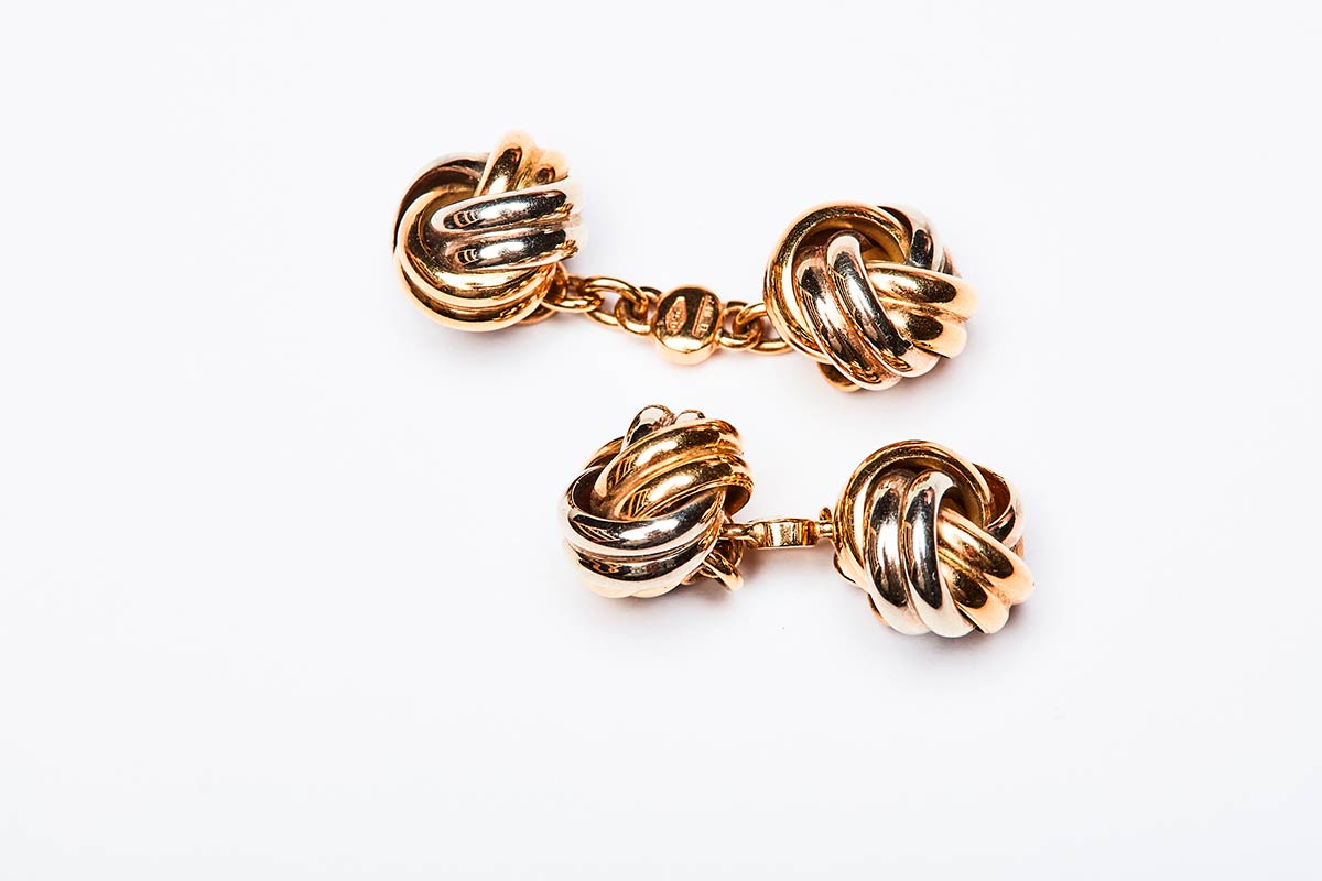 Gemelli artigianali realizzati in italia negli anni '60 in oro gialloe bianco K 18 a forma di doppio nodo. Misura 9,6 mm, peso 14,48 gr.
