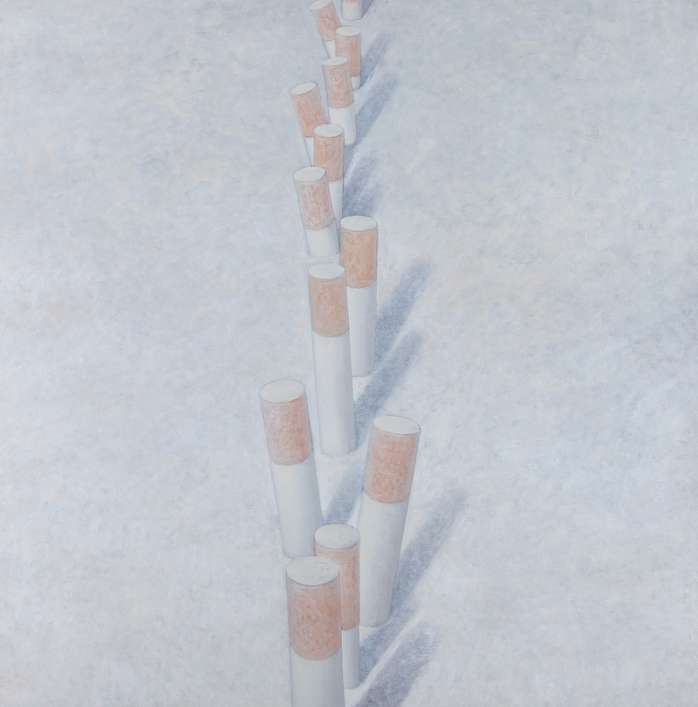 FABIO AGUZZI Milano 14/03/1953 Strada facendo olio su tela cm. 100x100, firma e titolo al retro, dichiarazione d'autenticità dell'artista su certificato con archivio numero 734-Q della Galleria d'Arte Contini (Mestre-VE) allegato.