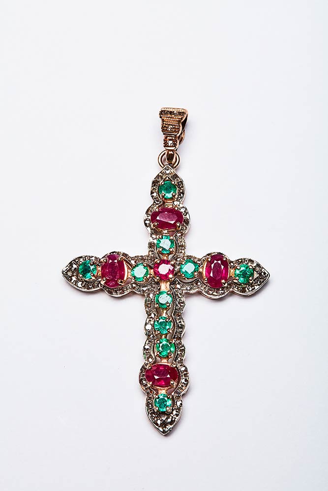 Lotto 198 | PENDENTE CROCE RUBINI E SMERALDI
