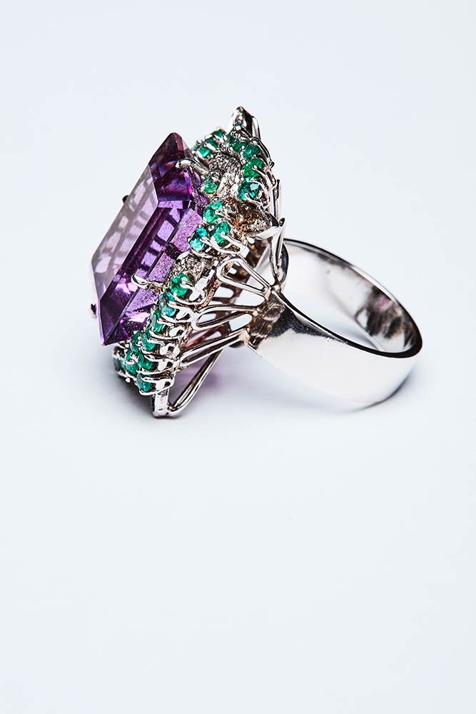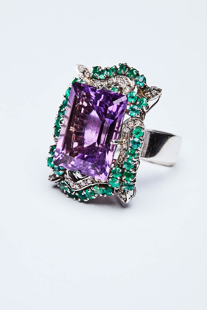 Lotto 241 | ANELLO CON AMETISTA, SMERALDI E BRILLANTI