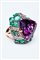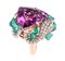 Anello artigianale realizzato in Italia negli anni '40 in oro giallo e bianco K 18 . Serpente tempestato di brillanti di 1,30 ct avviluppato ad una ametista centrale taglio trilland di 35 ct. Smeraldi tondi ed ovali di 9 ct ad impreziosire il tutto. Misura IT 19, 34,4x29 mm; peso 28,61 gr.