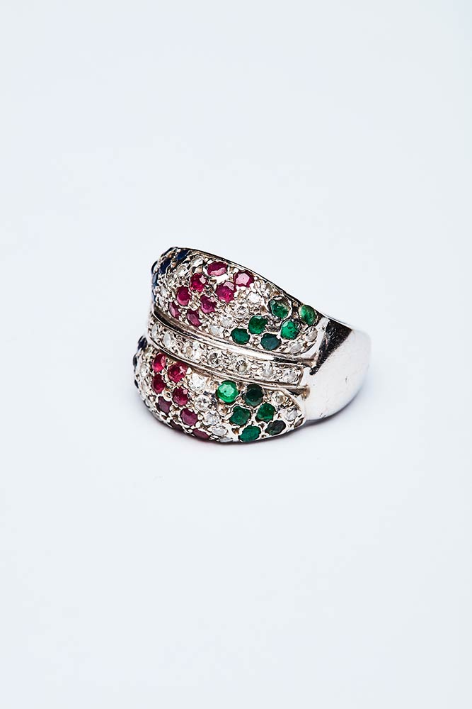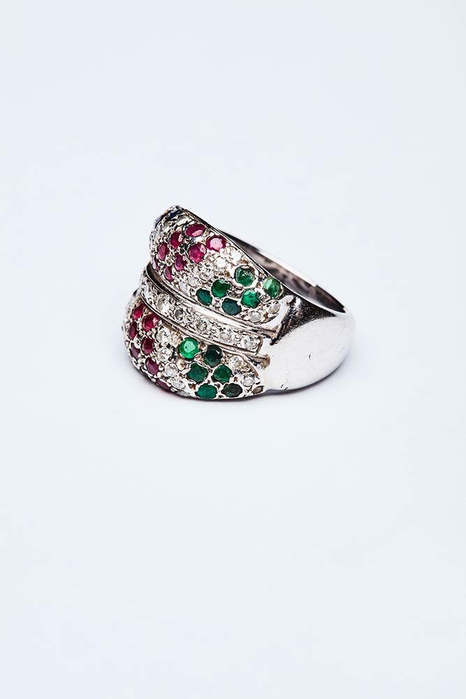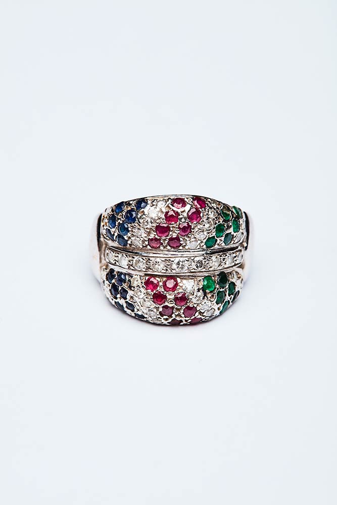 Lotto 283 | ANELLO A FASCIA GRADUATA CON ZAFFIRI, RUBINI E SMERALDI