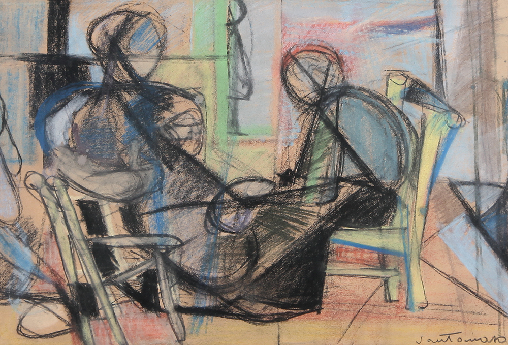 GIUSEPPE SANTOMASO Venezia 26/09/1907 - 24/05/1990 Figure in un interno tecnica mista su carta cm. 35x50, firma in basso a destra, archivio a cura della Galleria Blu (MI) allegato.