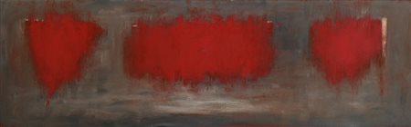 OMAR GALLIANI Montecchio Emilia (Re) 30/10/1954 Rosso corallo, 1990 olio su tela cm. 55x180, firma, titolo e anno al retro, dichiarazione d'autenticità dell'artista ed etichetta della Galleria d'Arte Astuni (Fano) su foto, opera priva di cornice.