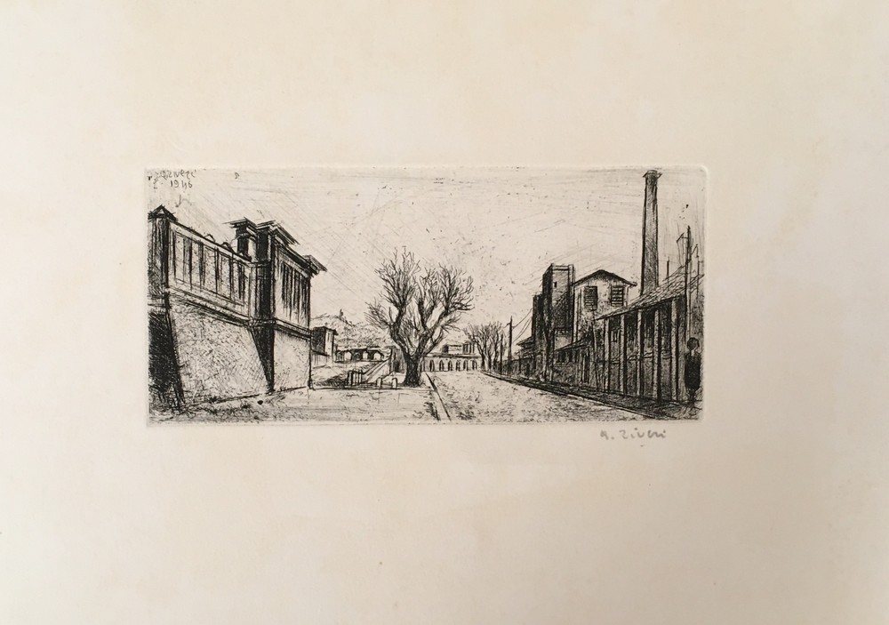 Firma in basso sul foglio: A. Ziveri, 1946; "Ziveri. Le incisioni. Catalogo generale", a cura di Netta Vespignani, Roma, De Luca Editore, n° 367, p. 162
