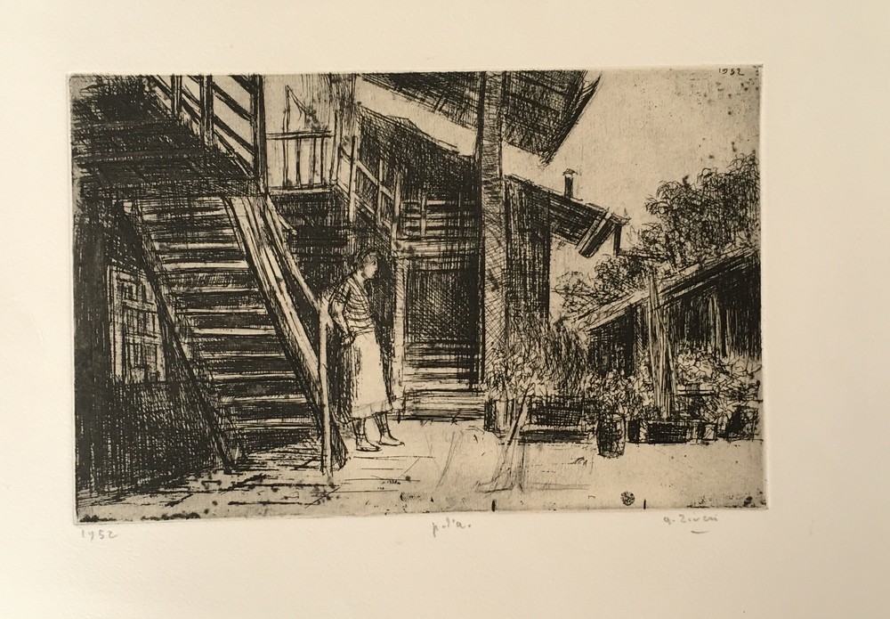 Firma, data e tiratura in basso sul foglio: A. Ziveri, 1952, p. d'a; "Ziveri. Le incisioni. Catalogo generale", a cura di Netta Vespignani, Roma, De Luca Editore, n° 495, p. 219