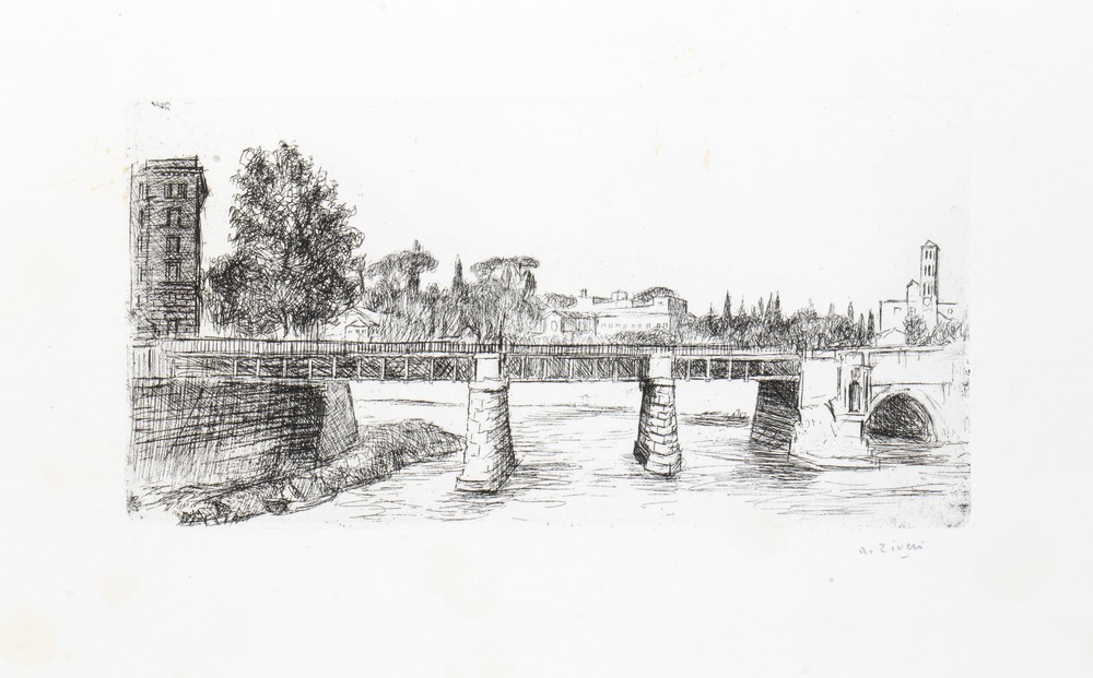 Firma in basso sul foglio: A. Ziveri; "Ziveri. Le incisioni. Catalogo generale", a cura di Netta Vespignani, Roma, De Luca Editore, n° 479, p. 211