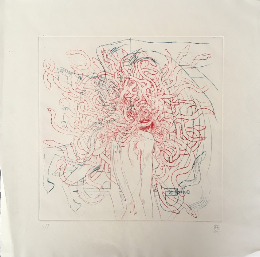 Incisione a puntasecca a 2 colori, 40 x 40 cm