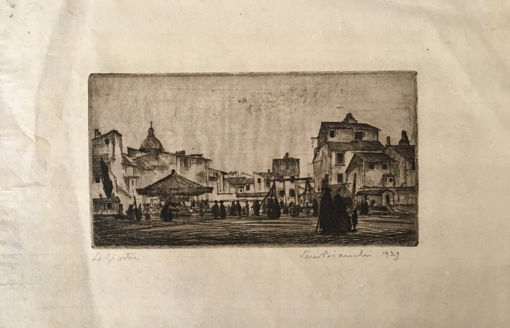 Firma, data e titolo in basso: Lino Bianchi, 1929, La Giostra