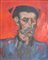 LONGARETTI TRENTO - TREVIGLIO 1916 - UOMO SU ROSSO, 1974 - OLIO SU TELA, cm 60 x 40. Firma in basso a destra Al retro firma titolo e anno. Provenienza A.C. Arte Vinciguerra
