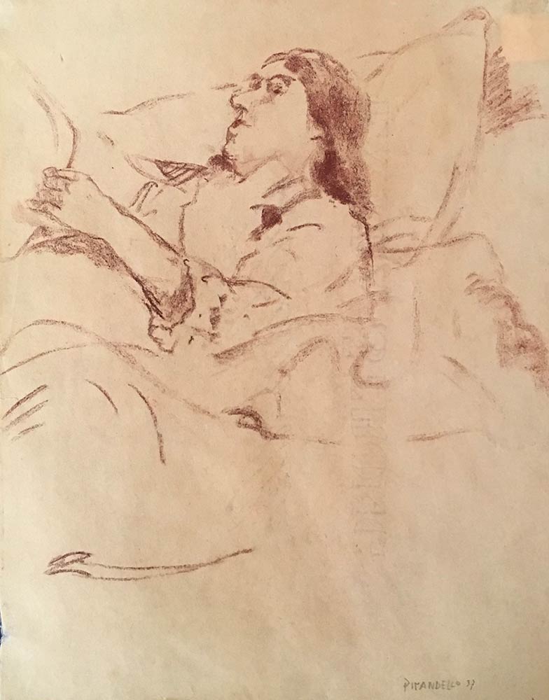 Carboncino marrone su carta giallina, 28,5 x 23 cm