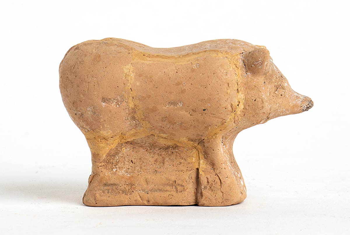 Italic Terracotta Pig, 3rd - 2nd century BC; height cm 7, length cm 10. Provenance: English private collection, according to the heirs possibly purchased in some auction or Art Gallery during 1970s-1980s.