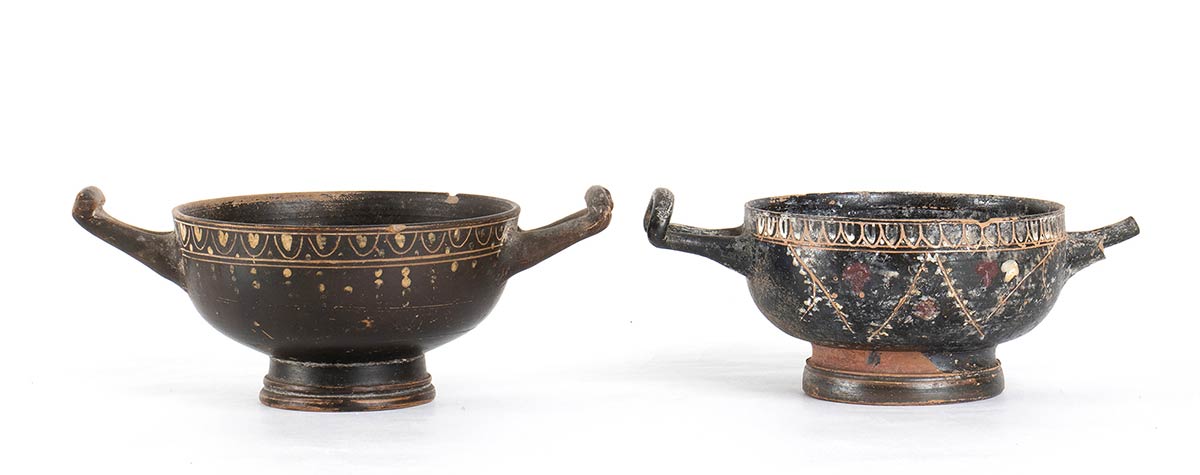 Couple of Apulian Cup-Skyphoi in Gnathia Style, 4th century BC; height cm 6,5, diam. cm 10,5