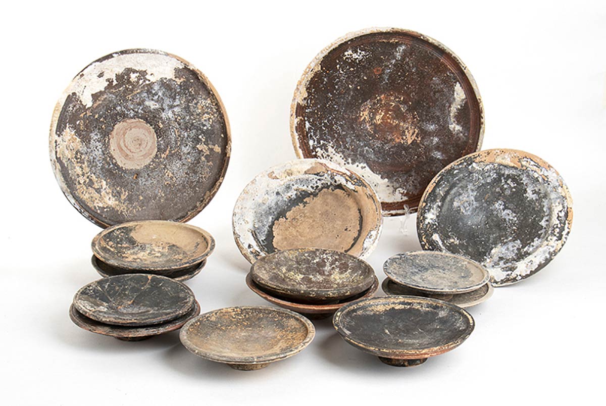 Group of Fourteen Etruscan and Campanian Black-Glazed Dishes, 4th - 3rd century BC; diam. max cm 24,6 - min cm 13. Provenance: English private collection, acquired by the current owner in Germany before 2000s.