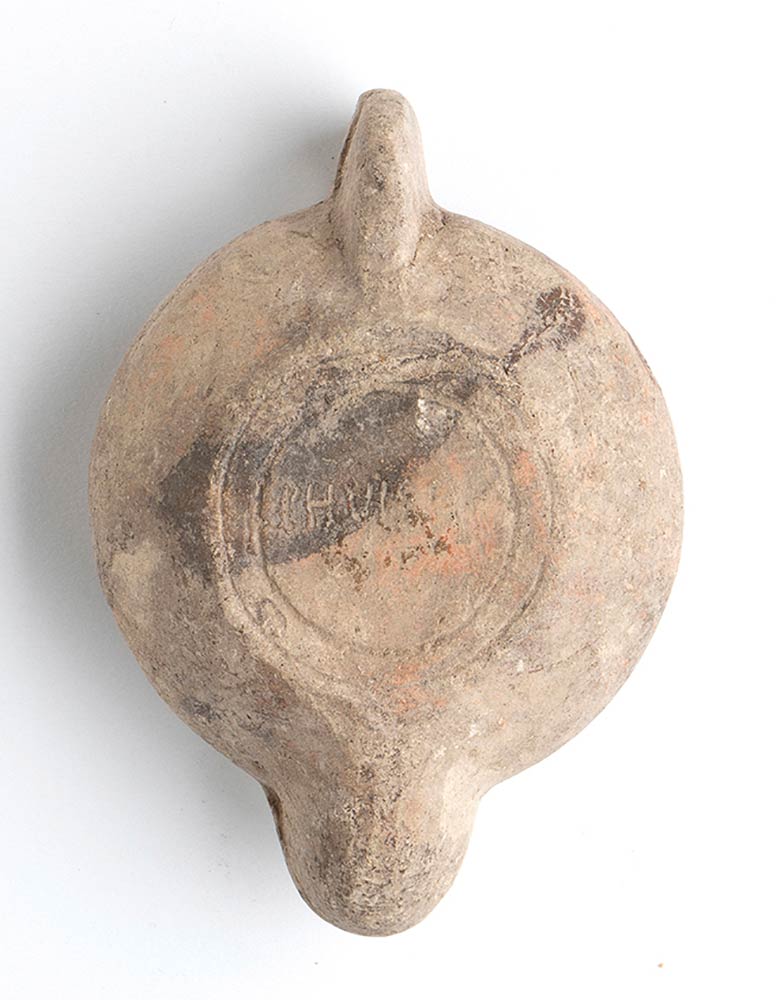 Roman Oil Lamp, 1st - 2nd century AD; height cm 4, lenght cm 10; Stamp on rear. Provenance: From the collection of a Diplomatic family since 1980s.