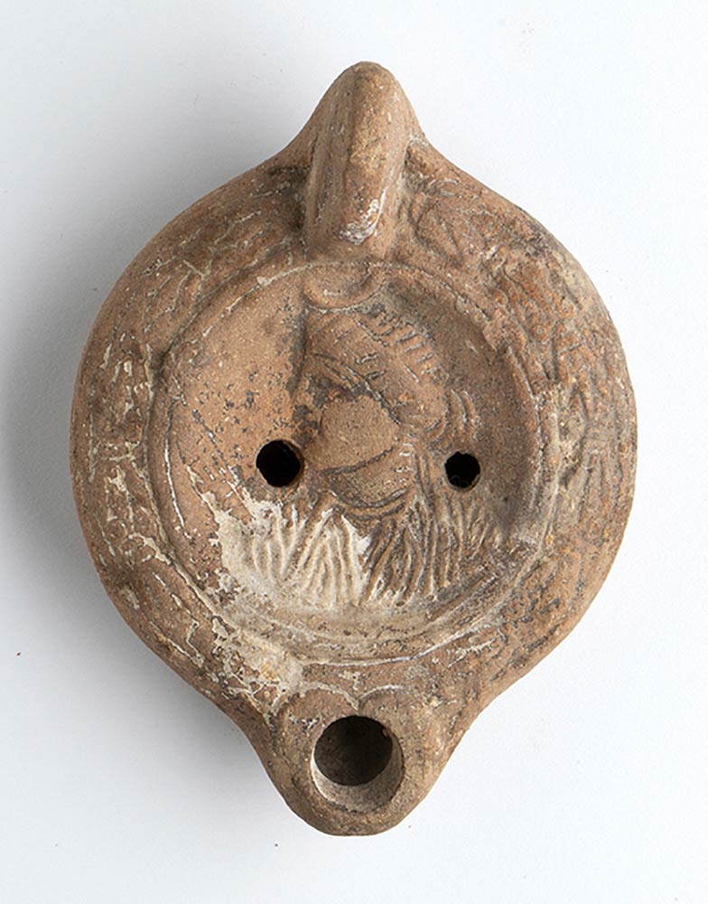 Roman Oil Lamp with Luna, 1st - 2nd century AD; height cm 5, length cm 12