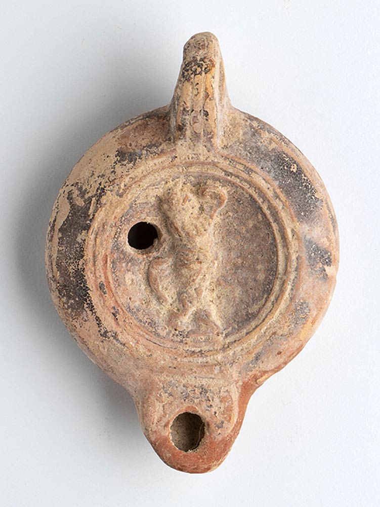Lotto 130 | Roman Oil Lamp with Dancing Satyr, 1st - 2nd century AD; height cm 4,5, length cm 11