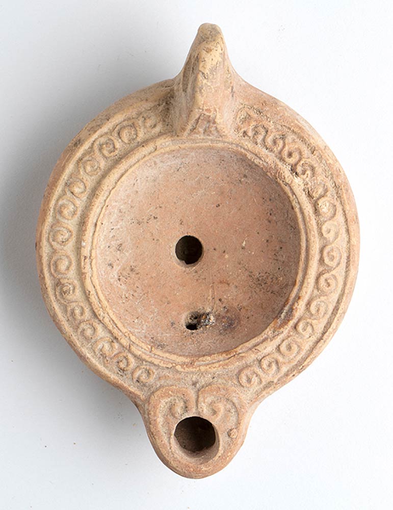 Roman Decorated Oil Lamp, 1st - 2nd century AD; height cm 5,5, length cm 12,5
