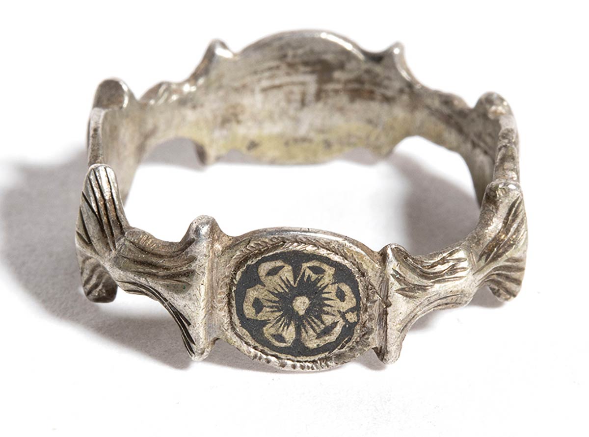 Lotto 271 | Ancient Silver Ring with Dark Flowered Bezel, 17th - 18th century; diam cm 1,9