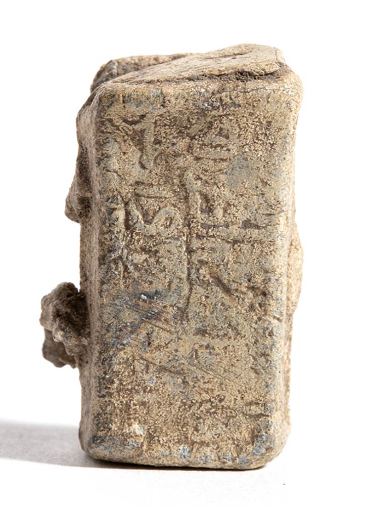 Islamic Lead Inscribed Amulet, 13th - 14th century; length cm 2,4. Provenance: English private collection.