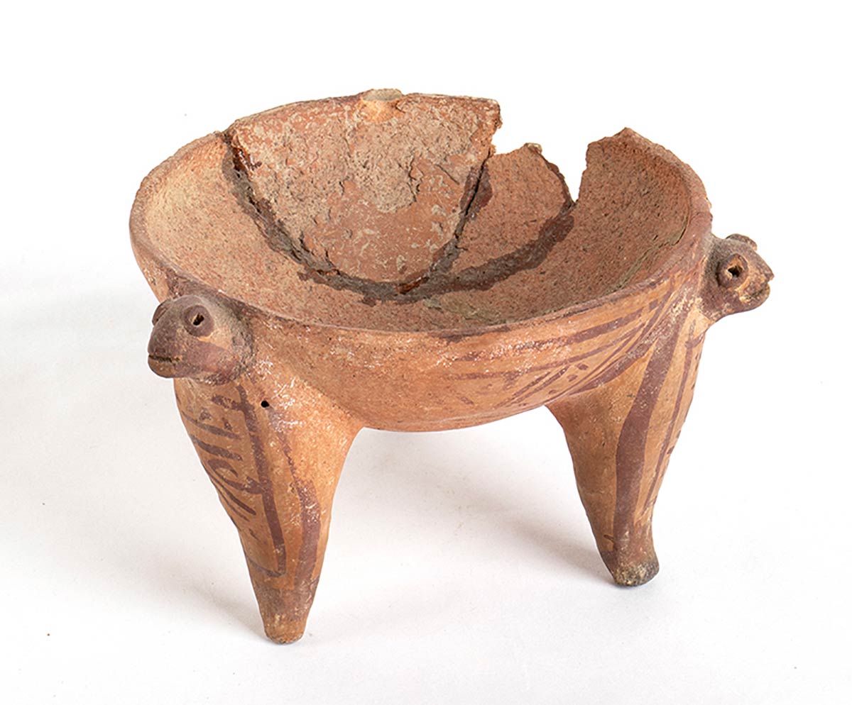 Tripod bowl with Turtle's Heads, Costa Rica, Guanacaste - Nicoya Cultures, 7th - 12th century; height cm 9, diam. cm 13. Restored. Provenance: From an Italian collection formed during 1980s - 1990s; this lot require the Italian export licence (please contact the auction house about info and additional cost).