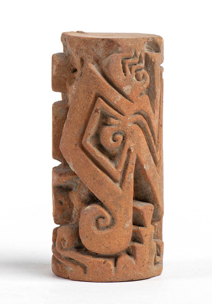 Terracotta cylindrical pintadera, Colombia and Ecuador, Tumaco-La Tolita Culture, ca. 4th century BC - 5th century AD; height cm 6; diam. cm 2,8. Provenance: From an Italian collection formed during 1970s - 1990s; this lot require the Italian export licence (please contact the auction house about info and additional cost).