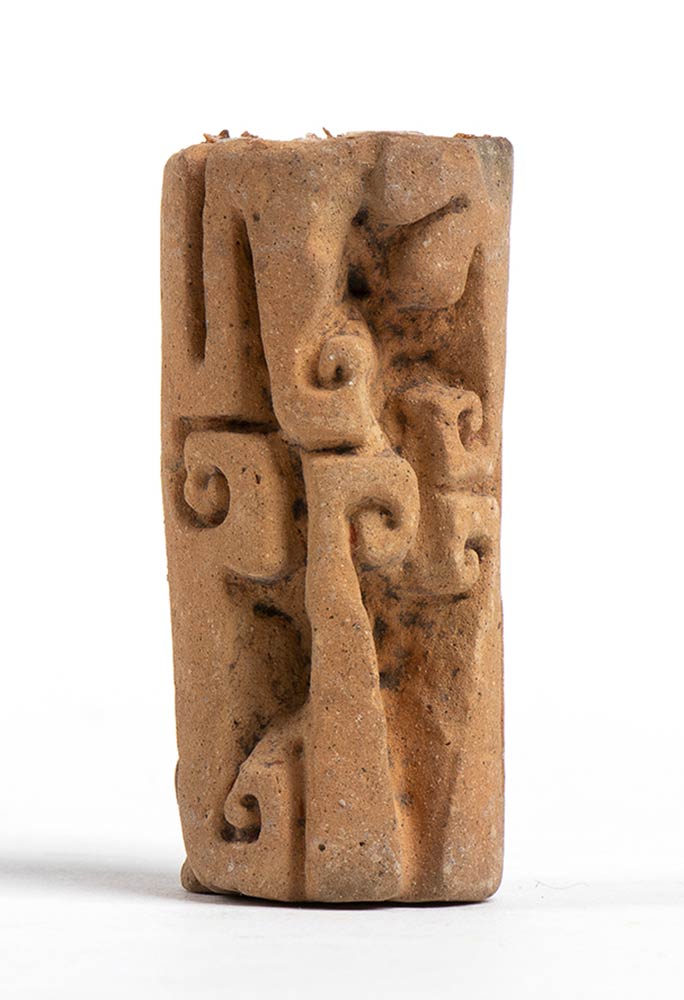 Terracotta cylindrical pintadera, Colombia and Ecuador, Tumaco-La Tolita Culture, ca. 4th century BC - 5th century AD; height cm 5, diam. cm 2,2