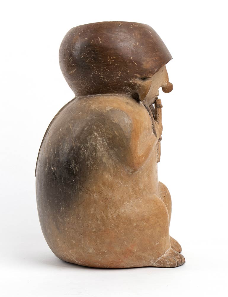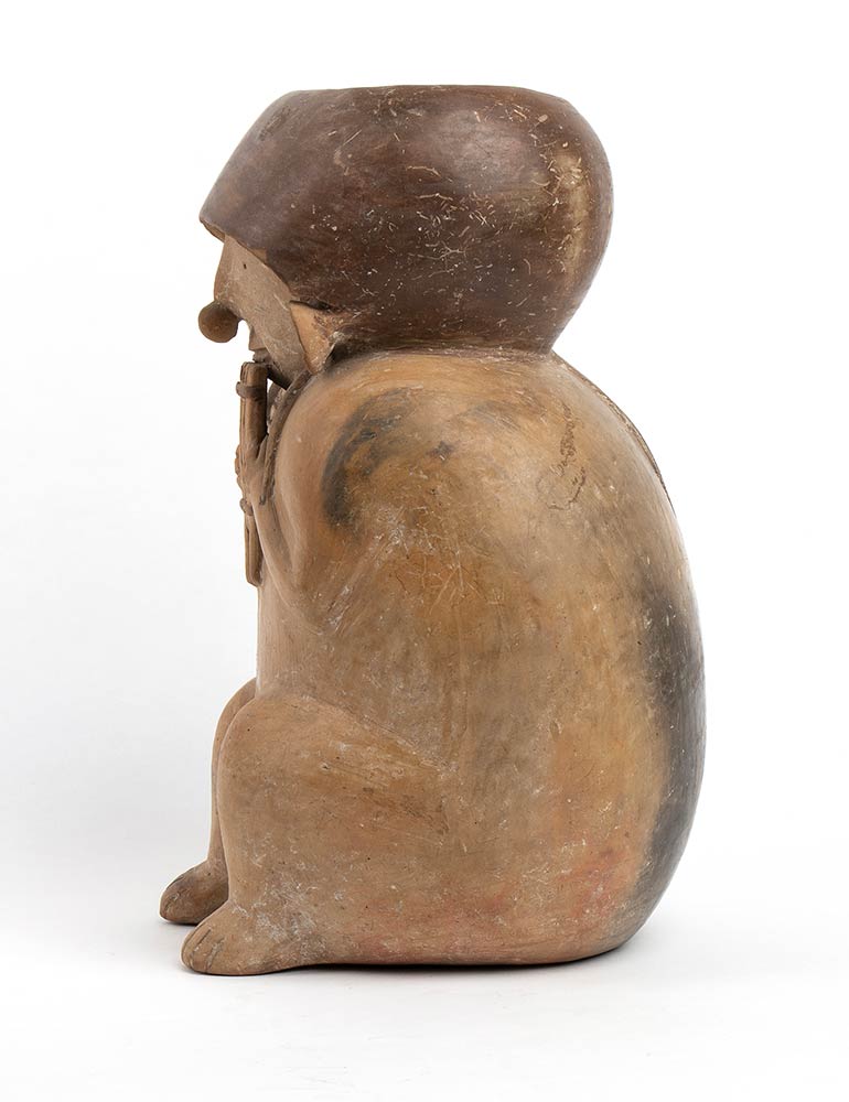 Lotto 386 | Jar in the shape of a Musician playing pan pipe, Perù, Chancay Culture, ca. 11th - 14th century; height cm 28, diam. cm 9,5
