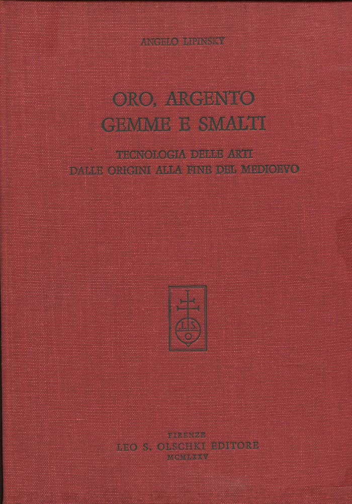 LIPINSKY A. – Oro, Argento gemme e smalti. Tecnologia delle arti dalle origini alla fine del medioevo. Firenze, 1975. Pp. xiv, 516, tavv. e ill. nel testo. ril. ed. slegata, buono stato, opera importante e ricercata.<br>