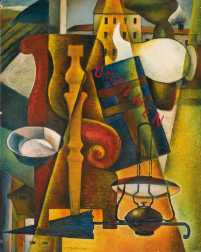 ROBERTO MARCELLO BALDESSARI 1894-1965 UMZIEHEN (TRASLOCO) signed, oil on cardboard. Executed in 1923 circa firmato olio su cartonlegno cm 71x56 Eseguito nel 1923 circa Opera registrata presso l'Archivio Roberto Marcello Baldessari, a cura di Maurizio scudiero, Rovereto, con il n. B23-07 L'opera è accompagnata da certificato rilasciato dall'Archivio Roberto Marcello Baldessari, a cura di Maurizio Scudiero, Rovereto PROVENANCE Collezione Emgler, Duisburg