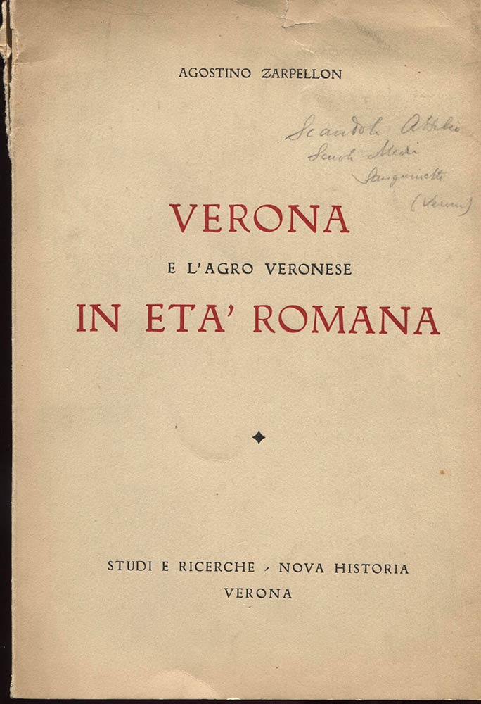 ZARPELLON A. - Verona e l’agro veronese in età romana. Verona, 1954. Pp. 113, tavv. nel testo. ril. ed. buono stato.