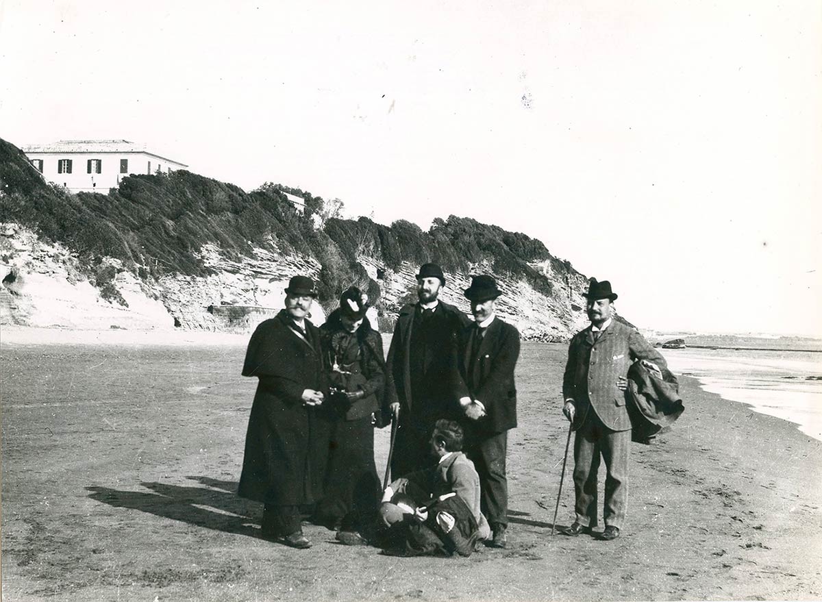 Two photographs from the Thomas Ashby Collection, ca. 1910; cm 24 x 18 each; Print on double-coated paper (RC), authorized reproduction from 1980s. Stamp on the back. In the pictures a group of archaeologists (including Rodolfo Lanciani) at the Imperial Roman Villa of Nero, in Anzio (Rome).