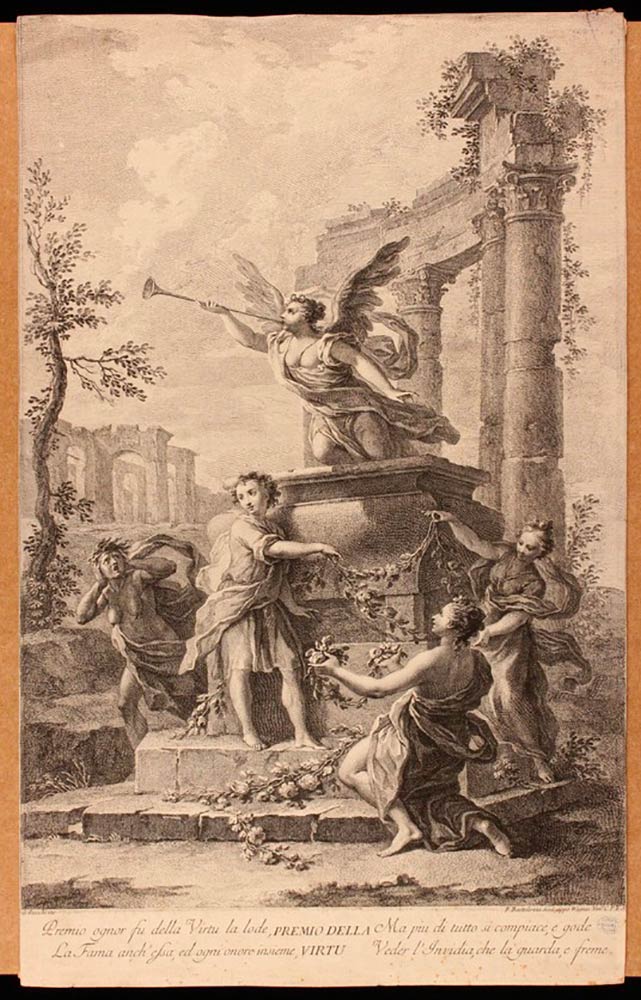Premio della Virtù, 1761; Acquaforte e pointillé di Francesco Bartolozzi (1728 - 1815), disegno da Giuseppe Zocchi (1717-1767) edita nel 1761 a Venezia da Joseph Wagner (1706-1786)