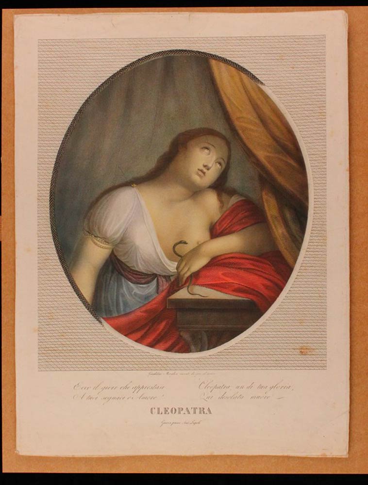 Venere che dorme / Cleopatra, 1810; Coppia di incisioni in rame di Guglielmo Morghen (1758-1833) stampate nel 1810 a Genova, con coloritura all'acquarello
