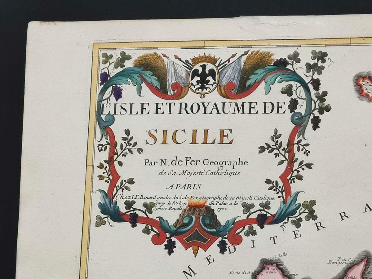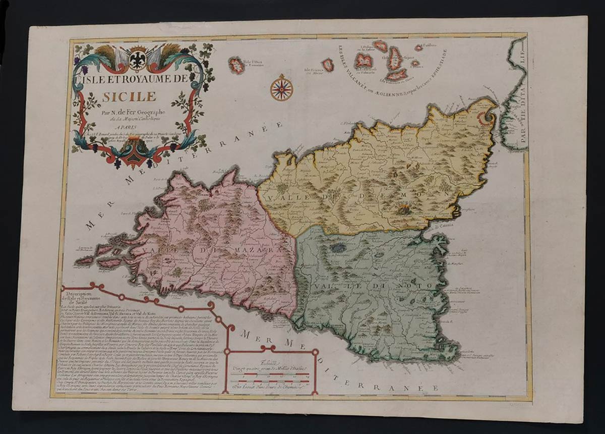 L’Isle et Royame de Sicilie, 1722; Acquaforte di Nicolas de Fer (1646-1720) Geographe de sa Majesté Catholique; stampata a Parigi 1722