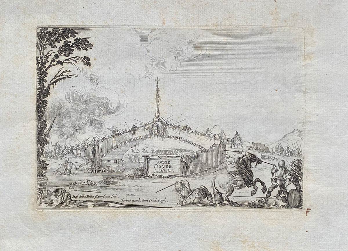 Frontespizio della serie di Varie Figure, con scena di battaglia su un ponte.