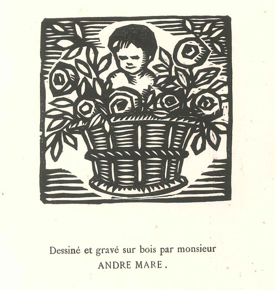 Child in the Flower Basket, 1918 "Child in the flower basket è una raffinata stampa originale (incisa nel legno) di André Mare (argentino, 1885-1932), come riporta la nota dattiloscritta sotto l'immagine.