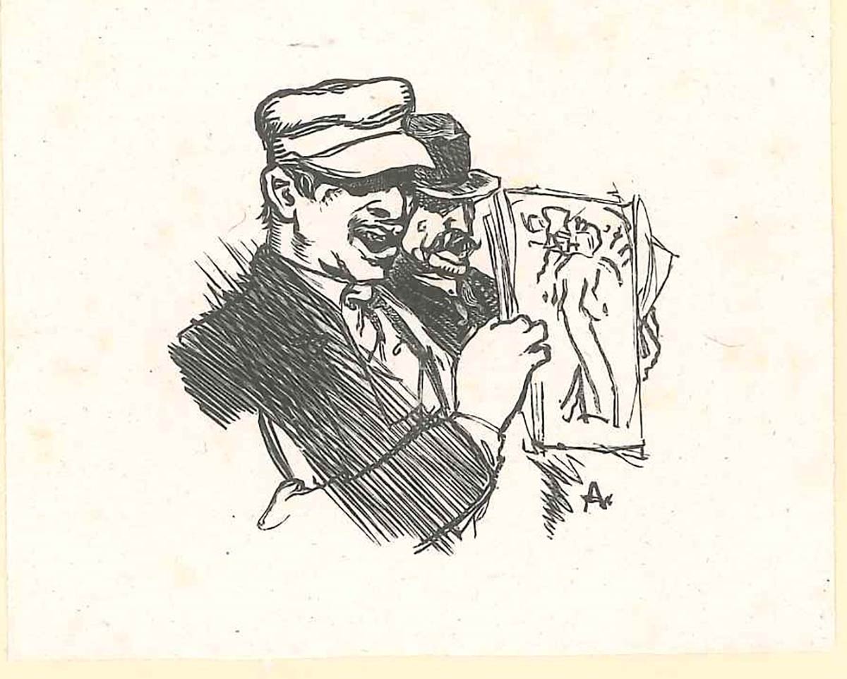 Due uomini con un'illustrazione, XIX secolo