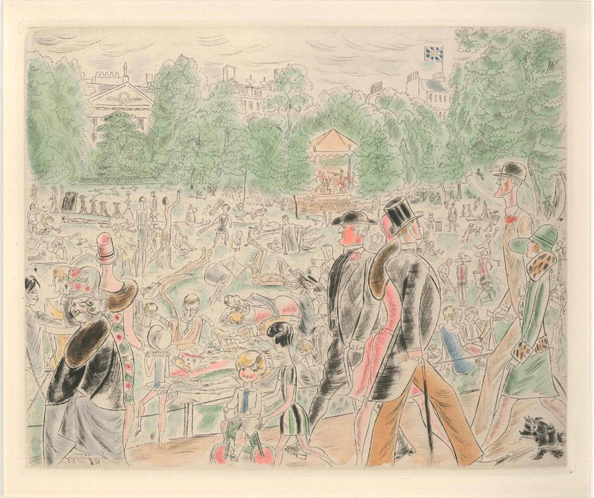 L'illustrazione, di Rues et Visages de Paris, è un'acquaforte e punta secca colorata a mano, di Chas Laborde. Questa stampa originale è dipinta a mano a tempera e acquerello.