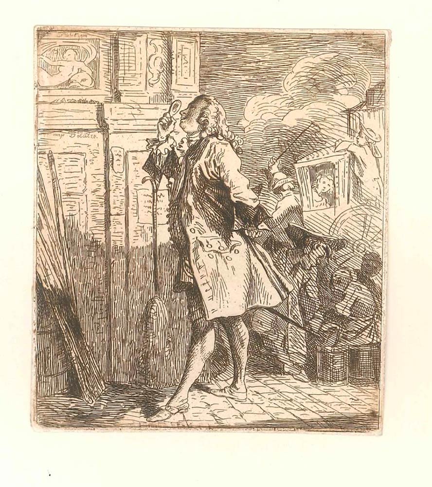 Questa curiosa opera d'arte, che rappresenta un gentiluomo francese, un artigiano collegato, ammirando alcune decorazioni architettoniche, fu pubblicata sulla Gazette des Beaux Arts nel 1859. Una stampa meravigliosa, dopo un disegno satirico di Caylus.