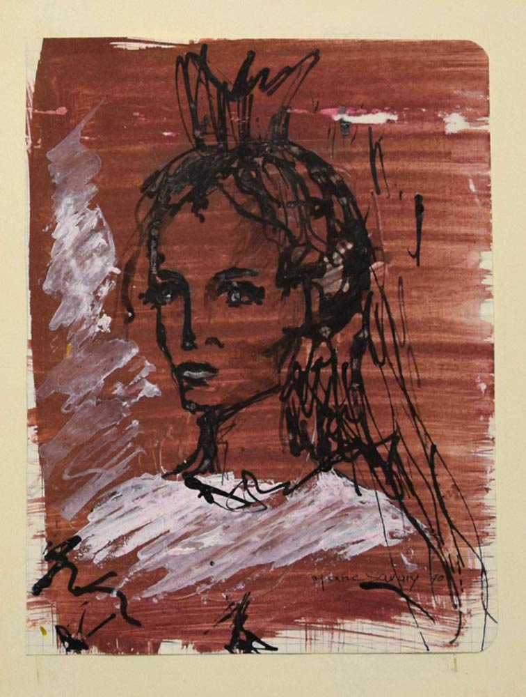 Ritratto di giovane donna è un'opera d'arte originale realizzata da Marie Savary nel 1970. Supporti misti (acquerello, china e tempera) su un quaderno di carta.