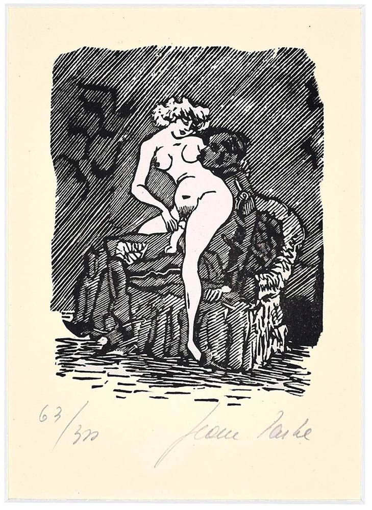 Firmato a mano con lo pseudonimo di "" Jean Barbe "" e numerato a matita sul margine inferiore. Edizione di 300 stampe.