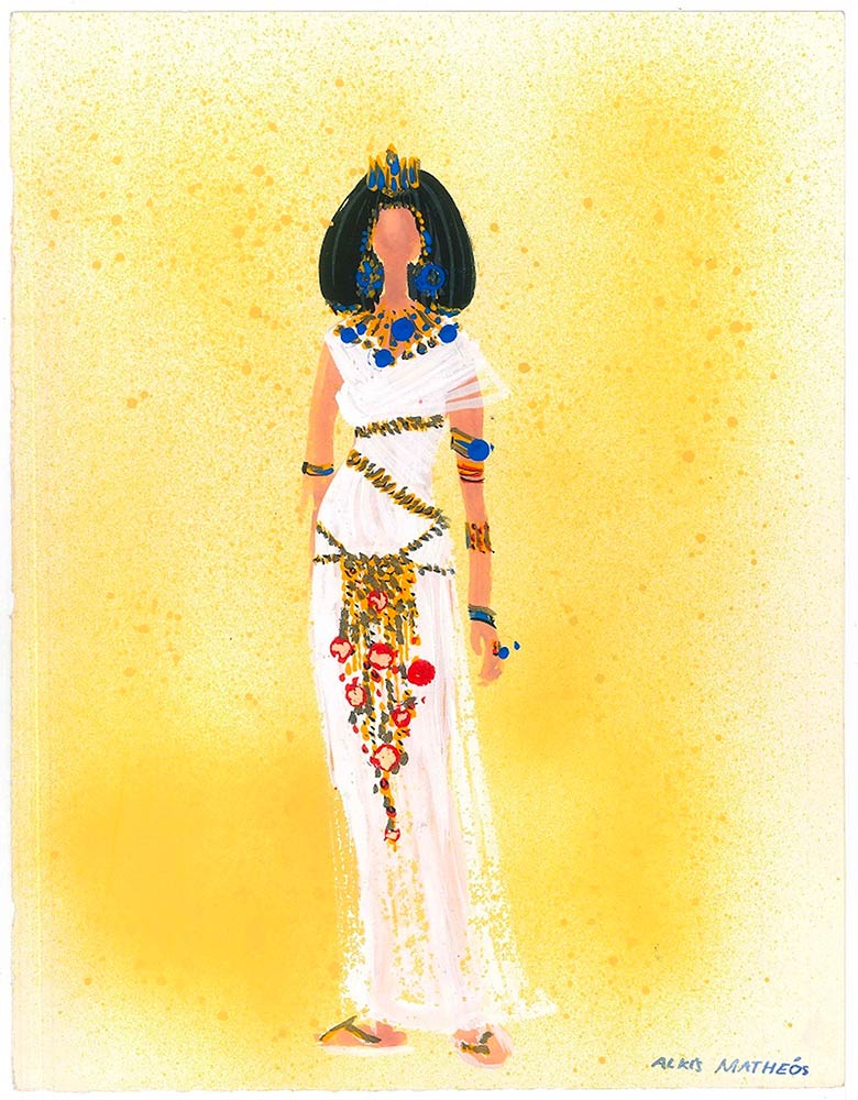 L'opera è una bella e colorata rappresentazione di un costume egiziano. La figura della donna è magra ed elegante e indossa diversi gioielli d'oro.