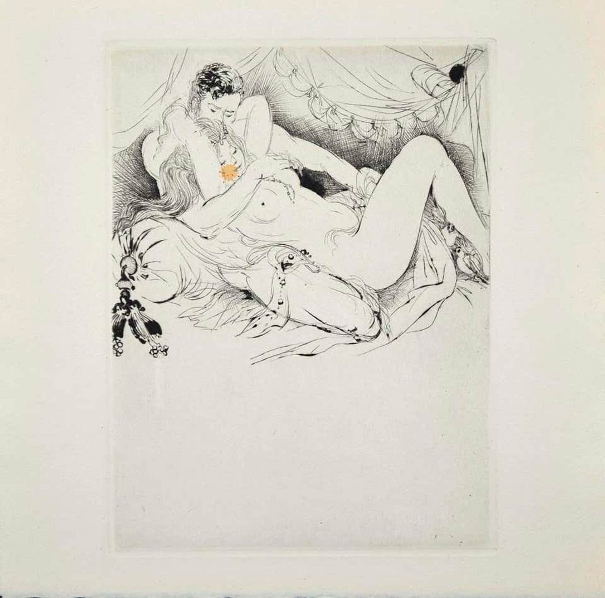 Sexual Encounter è una bellissima punta secca creata dal pittore, illustratore e scrittore francese Amandine Doré nella seconda metà del XX secolo. L'immagine, sensuale e piacevole, descrive una scena erotica tra un uomo e una donna in un'alcova.
